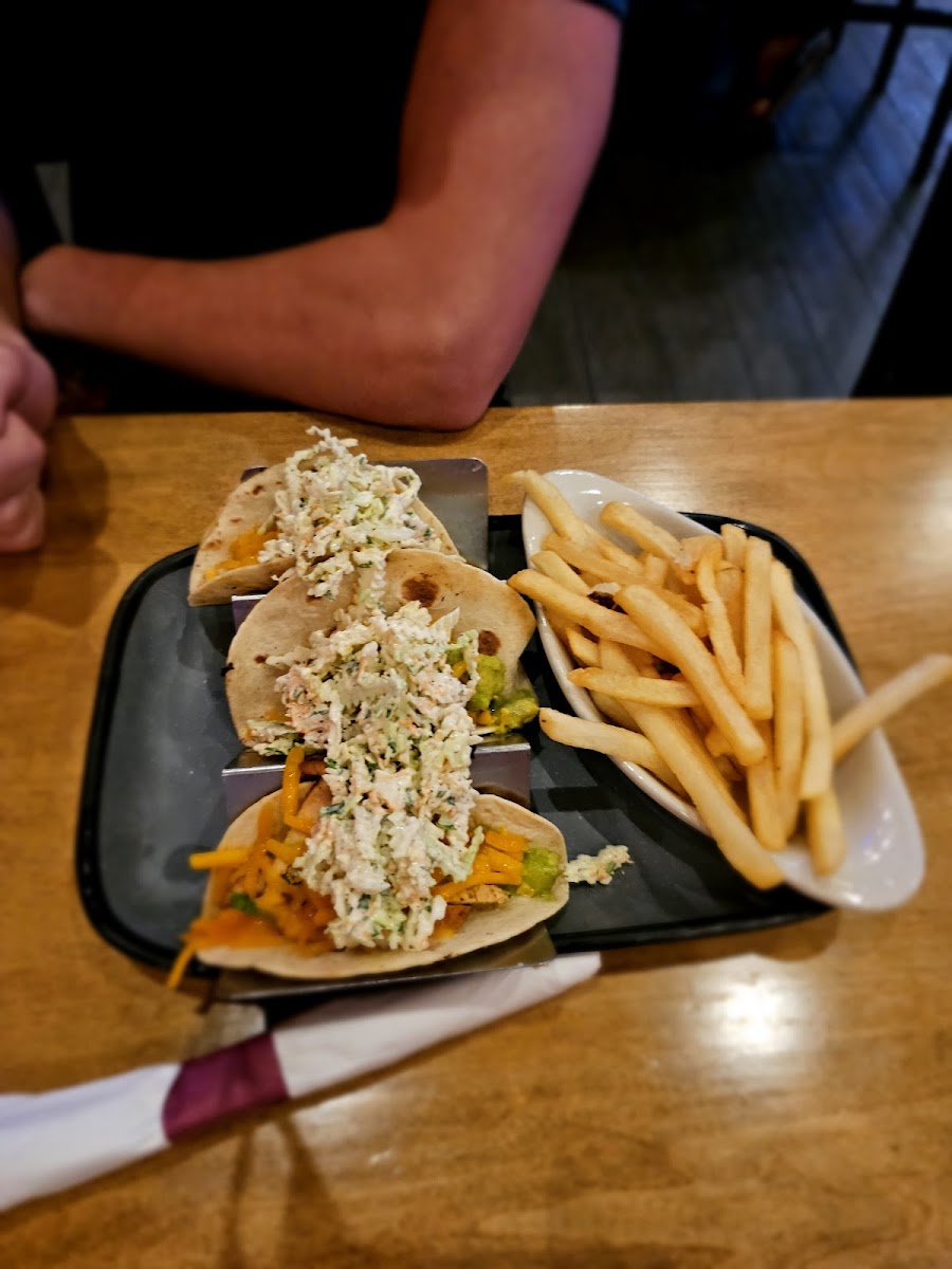 Had a great meal here with my family. The customer service was super friendly and fast. Food was fast and hot, drinks were cold and replenished quickly. My hamburger and fries were delicious, I really like their way of making fries. The wife and daughter had the fish tacos and loved them. Son had a bacon cheeseburger and woofed it down. The decor is great, the facility was clean and organized. Lots of tvs going, with games playing. Lots of open space also, it makes it nicer when you are not crowded, eating over someone. Once again the service was a big deal to me, everyone was awesome! Nice job!